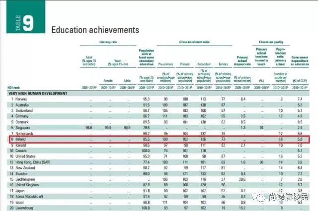 在最新联合国人类发展指数报告(HNDP)里显示,爱尔兰在教育成就方面位于世界第8位,远高于英国。
