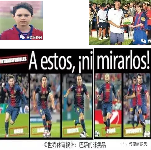 从巴萨青训营走出的足球明星:普约尔、皮克、伊涅斯塔、梅西。